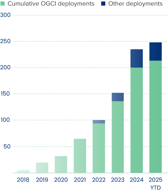 Supporting our portfolio companies is a priority for CI. We are hands-on and patient investors, working alongside founders to support the growth of their innovations, improve access to capital and – when ready – to support positioning for exit. CI’s commercialization professionals support the adoption of portfolio companies (PC) solutions and a key part of this model is deployment within the businesses of OGCI member companies. Our eight-year relationship with OGCI continues to facilitate the introduction of new technologies through pilot programs to validate technologies and the deployment of proven new technologies following introductions made by CI.