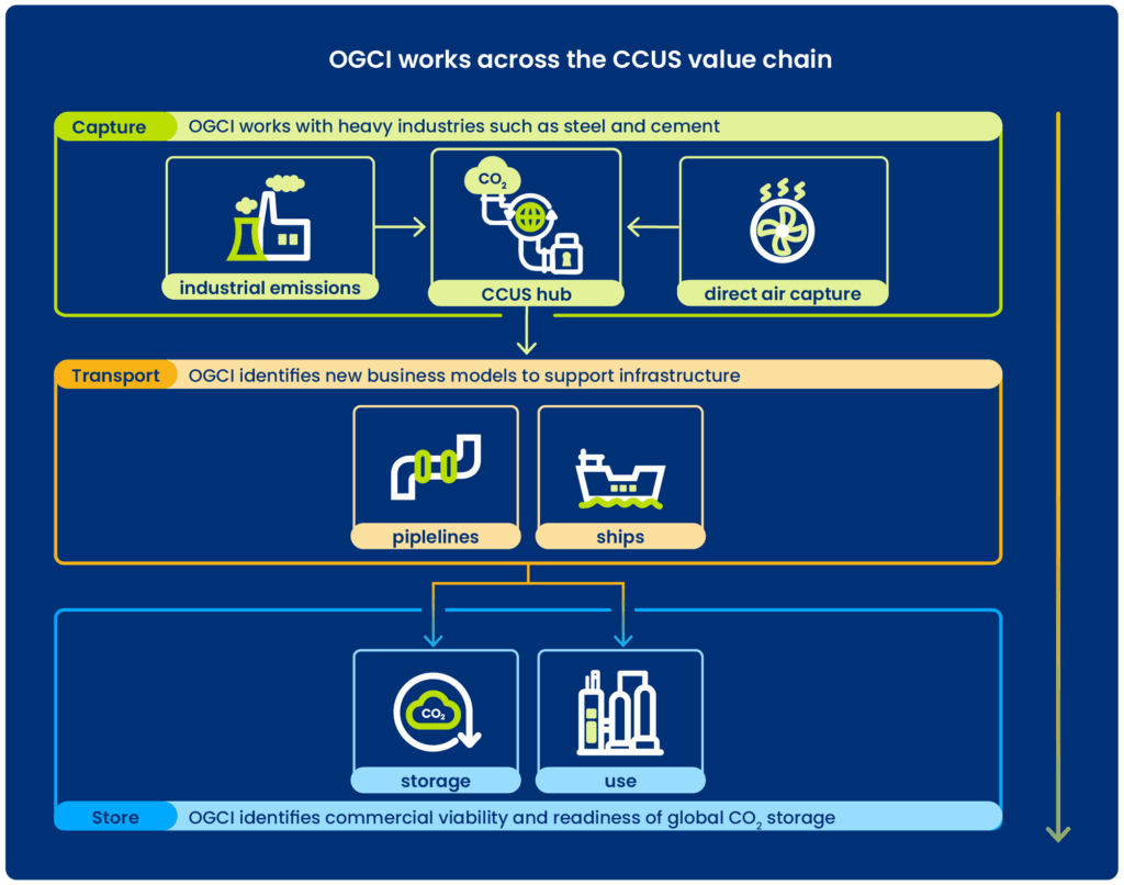 OGCI’s member companies are already using their proven expertise in carbon capture, CO2 injection, engineering, shipping, and large project execution to develop CCUS.